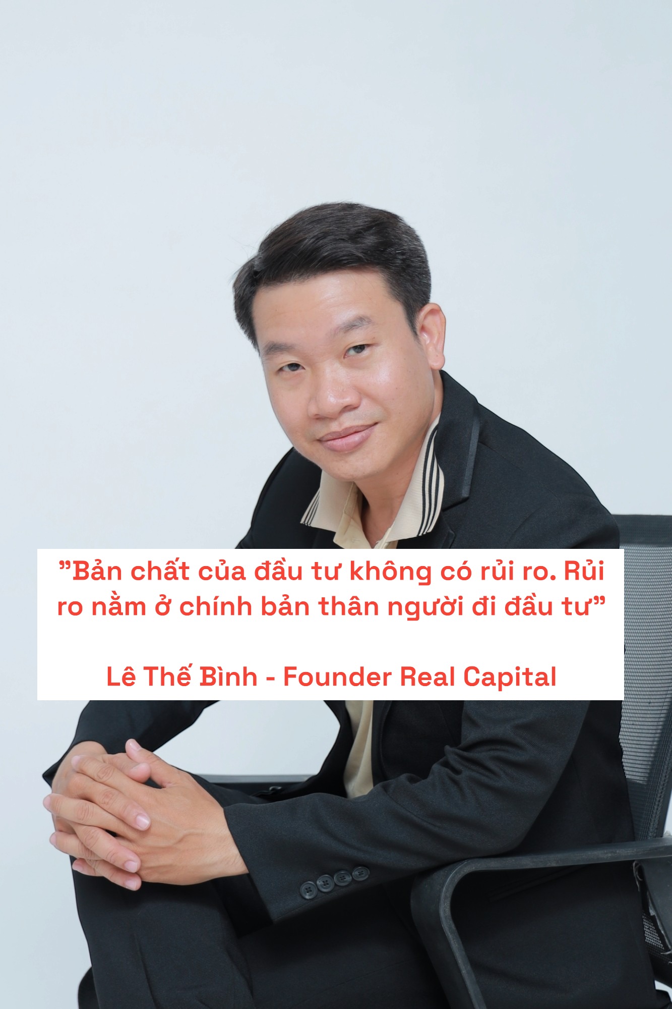 Với hơn một thập kỷ kinh nghiệm trong lĩnh vực bất động sản, Lê Thế Bình là một trong những chuyên gia cố vấn uy tín hàng đầu, nổi bật với tư duy chiến lược, thực tiễn và khả năng nhìn nhận xu hướng thị trường một cách sắc bén. Anh hiện là Giám đốc Công ty TNHH Quản Lý Đầu Tư Real Capital, đơn vị chuyên cung cấp giải pháp đầu tư, quản lý tài sản và môi giới bất động sản chuyên nghiệp.